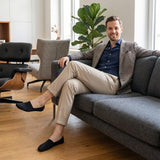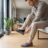 Our no-show socks are designed with a silicone heel grip that keeps them securely in place throughout the day. The fit is snug without feeling tight, so they won’t slide down or bunch inside your shoes.