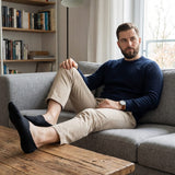 Our socks are made from a breathable cotton elastane blend that feels soft on the skin while allowing airflow. The fabric is lightweight, comfortable, and designed to hold its shape over time.